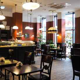 Все пироговые «Штолле» оформлены в стиле русской усадьбы начала двадцатого века — это спокойные тона природных оттенков.